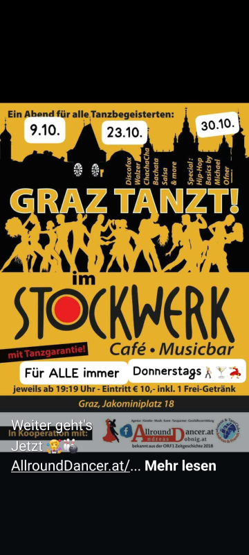 › Bilder › Stockwerk Do 9.10. u. 23.10. u.30ab 19:19h GRAZ TANZT Info 06644512100