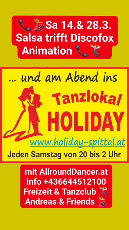 Tanzlokal Holiday Spittal SA 28.3. von 20h mit AllroundDancer Andreas +436644512100 buche DJ Tanzpartner